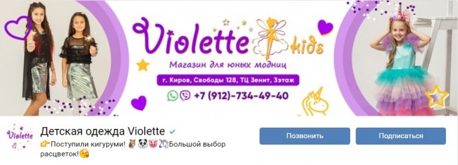 Позаботьтесь о визуальной составляющей: привлеките дизайнера для создания привлекательной обложки сообщества (располагается в самом верху страницы). На ней важно указать название сообщества, логотип, контакты, а также уникальное торговое предложение, но не перегружайте обложку текстом, как в примере ниже.