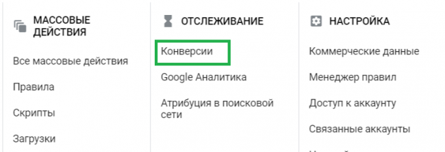 Я надеюсь, что прочитав эту статью, вы выберете и назначите правильную модель атрибуции в своем аккаунте Google Ads. А сделать это просто. Переходим в раздел «Конверсии».