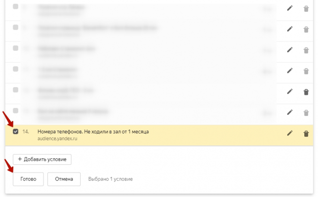 В разделе «Ретаргетинг и подбор аудитории» нажмите «Добавить условие» и заполните название условия.