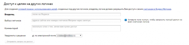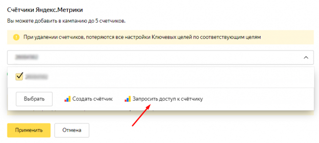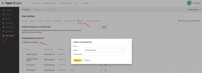 - Зайти в настройки доступа счетчика в Метрике и предоставить доступ для логина, под которым находится кампания.