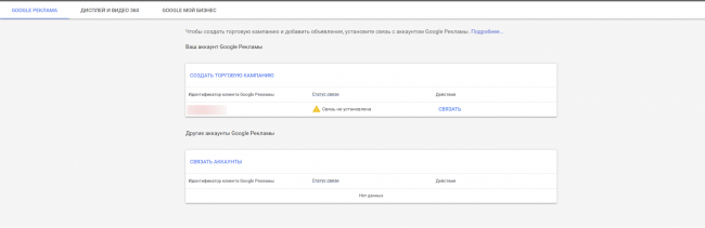 В Merchant Center нужно создать аккаунт под клиента, для которого вы будете запускать кампанию, а затем связать его с аккаунтом в Google Ads.