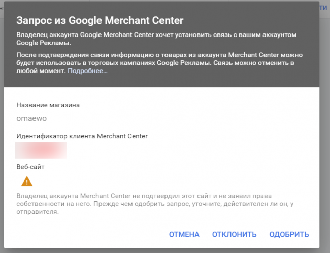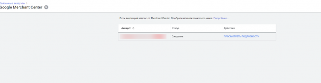 Аккаунты связаны, можно вернуться в Merchant Center и дозаполнить данные.