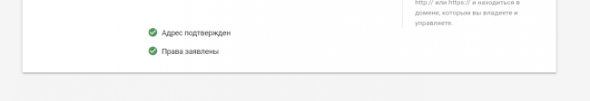 Должно появиться два зеленых индикатора, свидетельствующих о том, что сайт подтвержден. Без них мы не сможем запустить торговую кампанию.