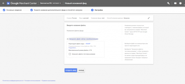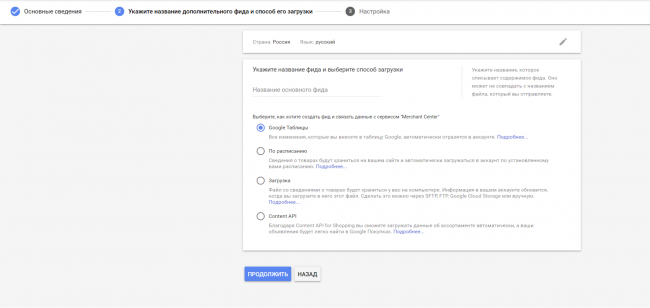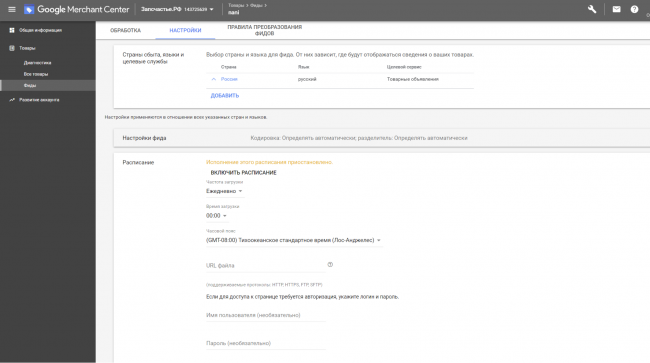 Загрузка фида с товарами в Merchant Center