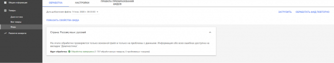 Если спустя время вы по-прежнему не видите своих товаров, попробуйте обработать фид повторно. Должно получиться следующее:
