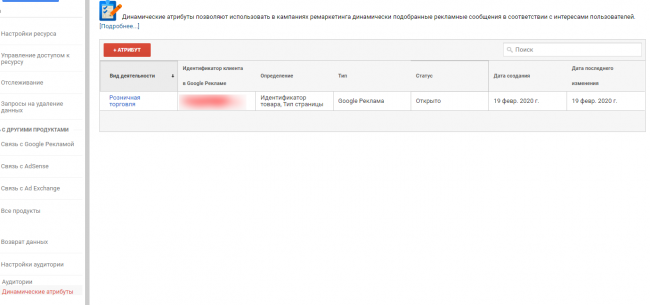 В моем случае выбраны параметры электронной коммерции. Затем переходим в динамические атрибуты.