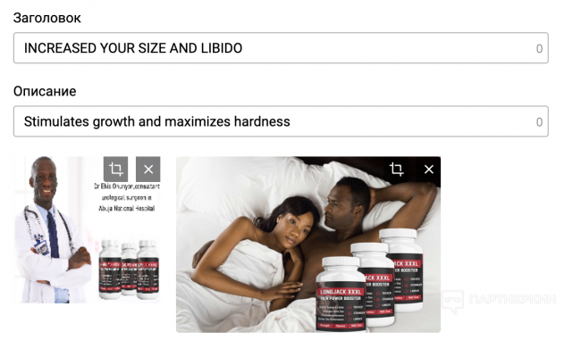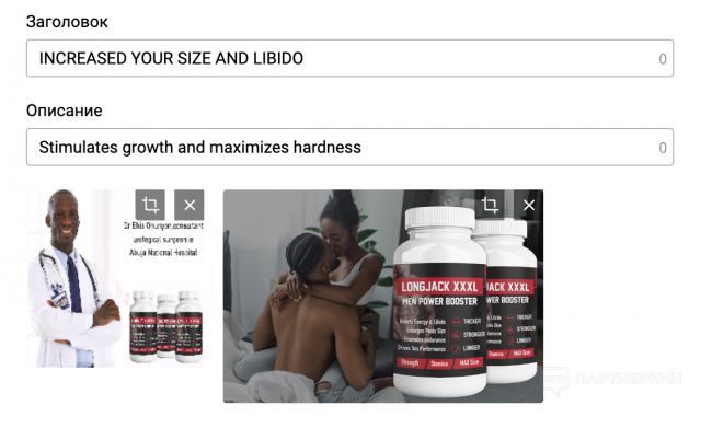 В основном картинки брал с самого ленда, часть взял с преленда, который был в наличии при выборе оффера. Текст брал тоже с ленда. На картинки добавлял изображения капсул, чтобы рекламировать товар сразу в лоб.