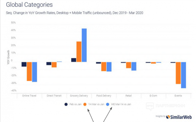 ✔Similarweb о влиянии COVID-19 на трафик: рост в доставке продуктов до 400%, падение ниши Travel и взрывная популярность Zoom - «Надо знать»