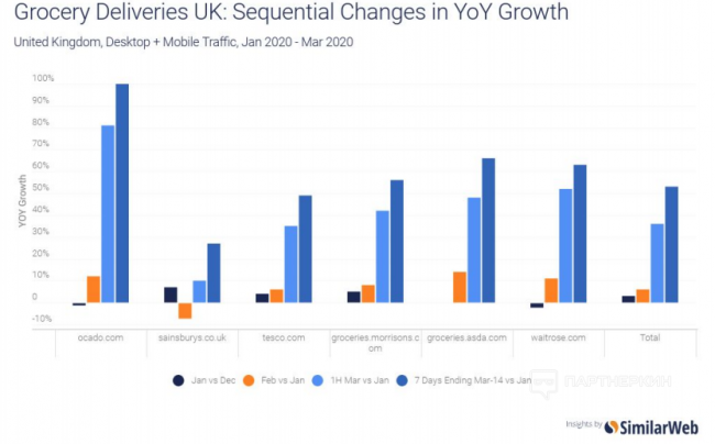Сервисы по доставке продуктов в Великобритании значительно нарастили трафик по сравнению с январем: