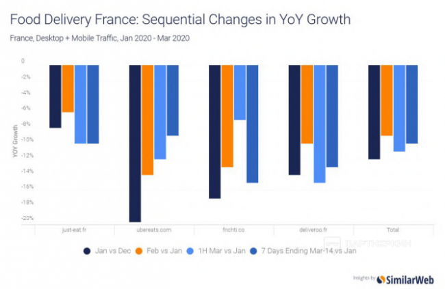 Судя по цифрам, Uber Eats во Франции страдает наравне с другими сервисами: