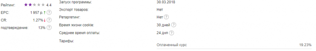 Если смотреть на показатели, видим что не очень радует глаз показатель аппрува, всего 13%, хотя показатель ЕРС нам показывает норм сумму, если еще и прикинуть на клик это будет примерно 19,5 рубля, по тому как считает эта ПП.