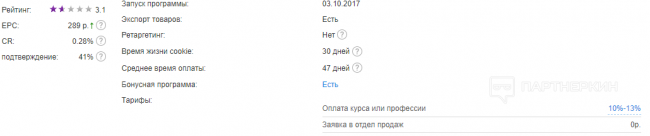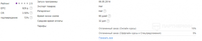 Тут видим что аппрув космический 72%, да и по ЕРС видим хорошую картину. Глянув на курсы которые представлены на этом оффере, могу сказать что выплаты там на порядок выше, если взять тот же курс по jawa, то там выплата будет под 9к руб, но опять это не точно, может больше, может меньше.
