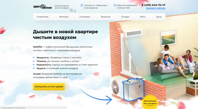 Приведем пример проекта, в котором мы продвигали вентиляционные установки.