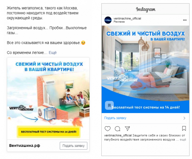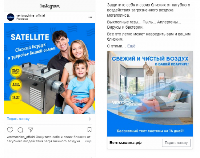 Мы также попробовали продвигать проект в Instagram и Facebook, где целевая аудитория проявила себя гораздо лучше. Так случилось потому, что приточная вентиляция — недешевая вещь.