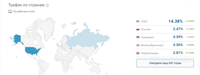Напомним, что большая часть десктопного трафика на CoinMarketCap идет из США — 14,38% пользователей. Среди лидеров также Россия (5,47%), Германия (4,39%), Великобритания (4,36%) и Нидерланды (3,81%).