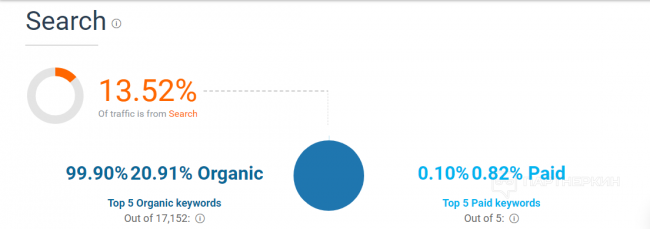 Основным источником поискового трафика для Coinmarketcap является Google (13,52%).