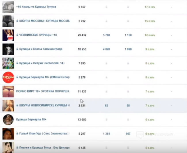 Трафик брался из пабликов «Курицы» по всем крупным городам России. Какое-то время назад такие паблики были на вершине популярности, но и сейчас они еще на коне, потому как эксплуатируют извечную тематику, волнующую мужчин во все времена. Кроме того, трафик шел из пабликов в духе «Город грехов (название города)», «Пошлый (название города)». Баблоруб размещал в этих группах платные посты, которые продвигали нативную рекламу сайта знакомств для взрослых. Каким образом он это делал?