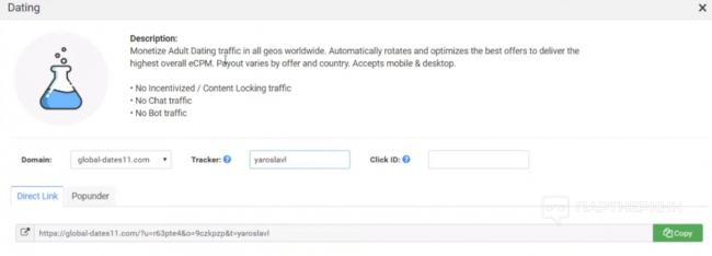 При этом использовалась не ссылка на конкретный оффер, а смартлинк, который сам подбирает оптимальный оффер под каждого посетителя.
