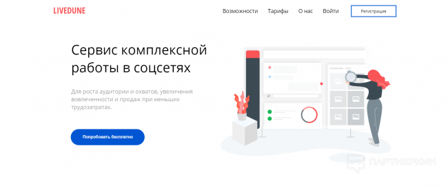 А начнем мы с LiveDune - сервис комплексной работы и аналитики в соцсетях.