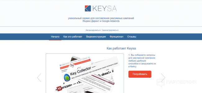 Следующим расмотрим сервис для составлений рекламных кампаний Яндекс.Директ и Google Adwords - Кейса.