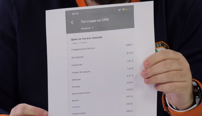Вы спросите «А где Россия?». Россия находится ниже со значением $2,58 за 1 000 просмотров: