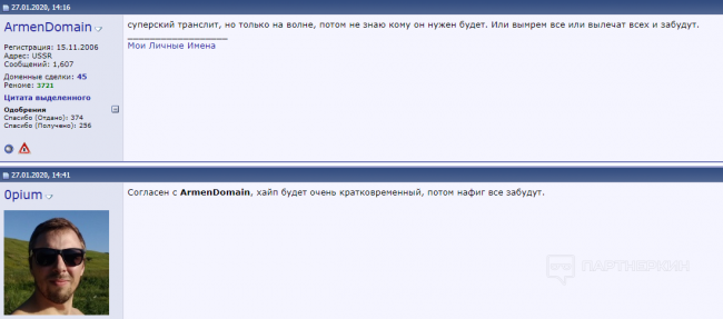 Некоторые форумчане не решились называть ценник, но прокомментировали сам домен (koronavirus.ru). По их мнению, хайп будет кратковременным: