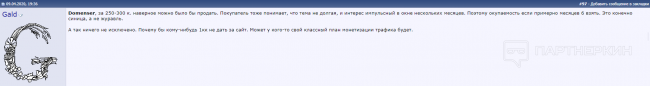 Один из комментариев на предложение о покупке был: «Встречку 75 и сливать», на что владелец доменов ответил: «Да мало 75. Не на пике же еще»: