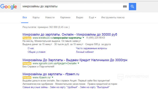 Беспроигрышный вариант, который может обойтись очень дешево. Достаточно лишь создать свою собственную площадку финансовой тематики. Часто используются и хорошо конвертятся витрины. Здесь вы можете одновременно проливать даже несколько офферов. Контекст тоже поможет, если использвать в объявлениях наиболее приятные условия по займам.
