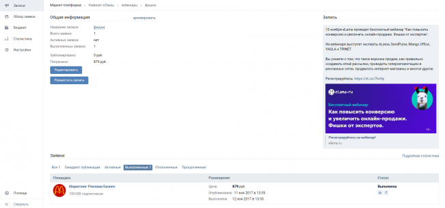 - Через маркет-платформу — официальный и самый простой канал размещения. Система сама предложит вам площадки в зависимости от характеристик вашей аудитории и бюджета, остается только проанализировать и выбрать подходящее. При работе с этим каналом не придется переживать о сроках и анализе результатов. Вы можете быть уверены, что пост выйдет вовремя, сможете отслеживать статистику в динамике.