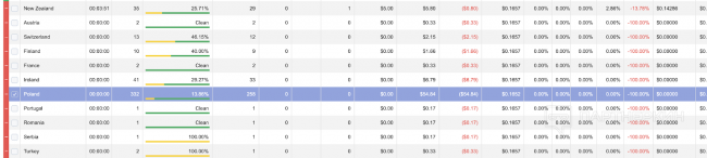 В примере выше, слабым элементом моей связки уменьшающей мой ROI была Польша.