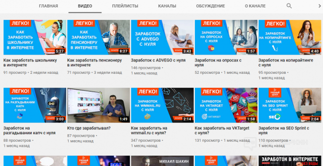 «Заработок в интернете без воды» — это новый канал, первые видео залили туда только осенью, а регулярно заливать стали только пару месяцев назад.
