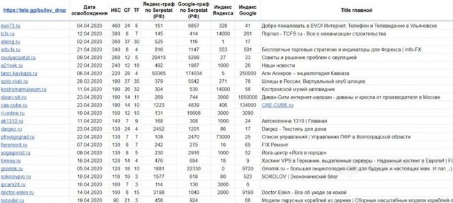- 4 информационных сайта (2 на дропах, 2 куплены на Telderi)