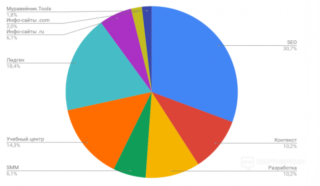 В каждом направлении есть 1-2 лидирующих проекта, которыми больше занимаемся, и они приносят больше всего дохода. Остальные проекты приносят меньше и ждут своего часа, пока самые мощнее не полезут в топы после небольших работ по ним или пока не дойдут руки до их более активного продвижения.