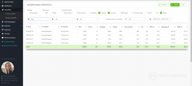 Почему выбор пал на смартлинку? Ну, во-первых, мне нравится ее функционал: в нее вшито более сотни свипстейк-офферов c разными видами оплаты (SOI, DOI, CC submit) под конкретную вертикаль с поддержкой всех устройств (дескоп, мобайл) и большим выбором стран. Во-вторых, для создания и оптимизации смартлинки не нужно постоянно юзать трекер и тратить кучу времени на поиск хорошего оффера.