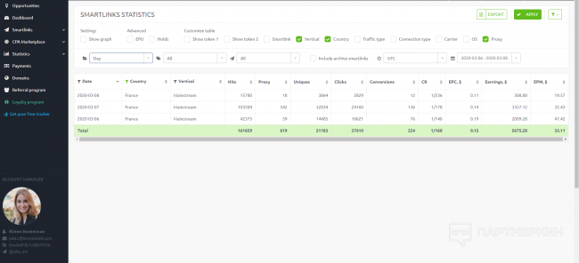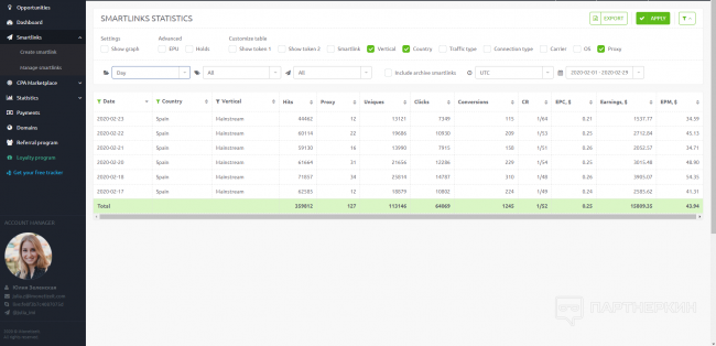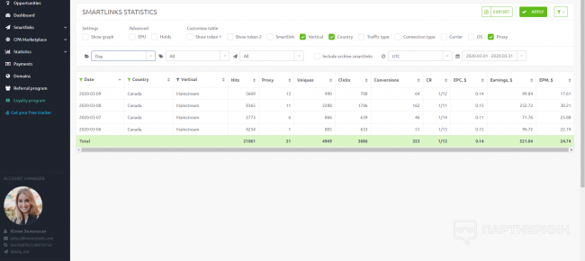 Приятно удивило, что смартлинка свипов отработала не хуже, чем давно проверенный дейтинг. Хоть и партнерка специализируется на дейтинге, но при правильном масштабировании и выборе Гео, свипстейк смарта отработала очень круто!