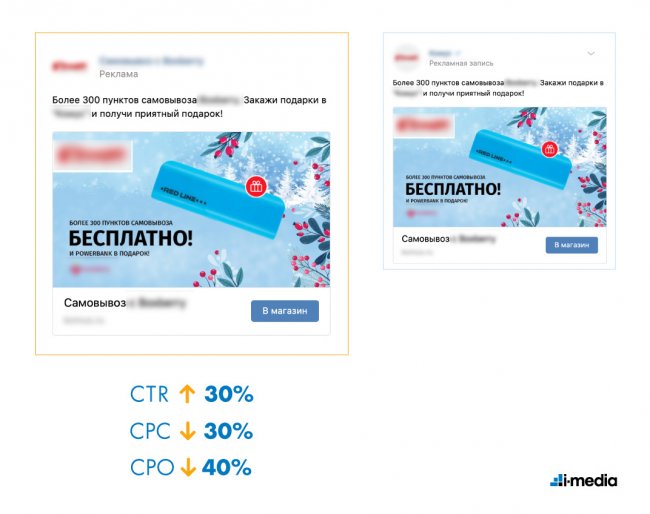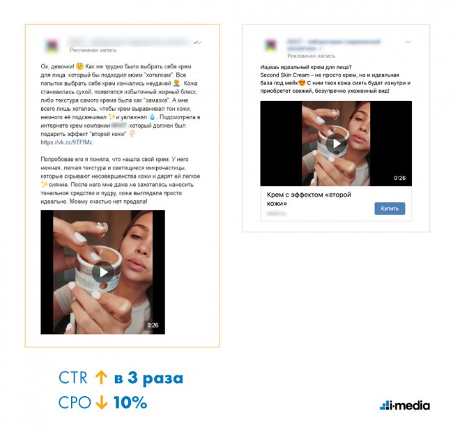 Мы использовали такой формат, чтобы разместить нативное объявление (написанное от лица блогера) с размеченной ссылкой в тексте. CTR объявления был в 3 раза выше, чем у записи с кнопкой, которая показывалась на ту же аудиторию. Цена заказа, полученного через нативное объявление, оказалась на 10% ниже.