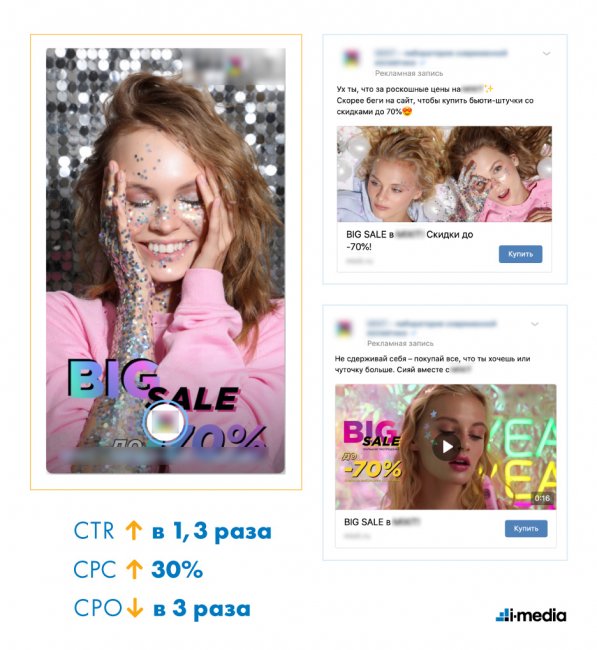 Можно ли на основании этого сделать вывод, что баннер работает лучше, чем видео? Конечно же нет. В нашей практике много примеров, когда ситуация была полностью обратной. Поэтому не стоит останавливаться на чем-то одном — креативе с фото или с видео. Нужно по возможности тестировать все подходы.
