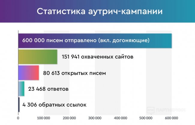 Все это — огромный труд и терпение. Если бы мы разослали 600 000 писем в короткие сроки, то получили бы приглашение в черный список, а не обратные ссылки.