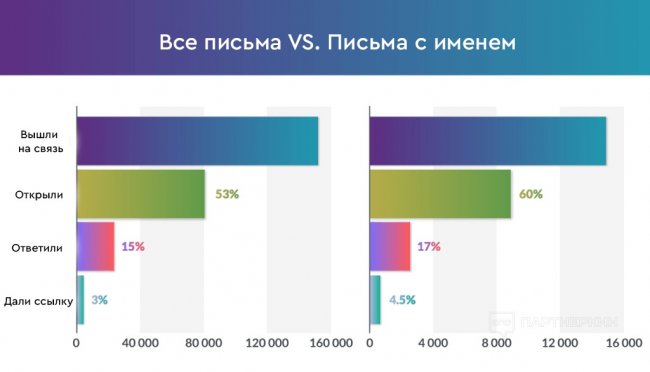- Использование имени получателя в письмах увеличило количество обратных ссылок на 50%.