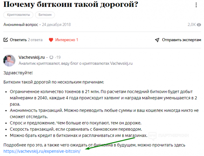 Дальше переходим на страницу, даем ответ и вставляем ссылку на свой ресурс. Но очень важно дать качественный и объемный ответ (чем больше текста, тем ответ будет находиться выше, и вы получите больше кликов). За интересный ответ вам будут ставить лайки другие пользователи, и со временем ваш комментарий, возможно, переместится в раздел «Лучший ответ» и вы будете получать трафик каждый день: