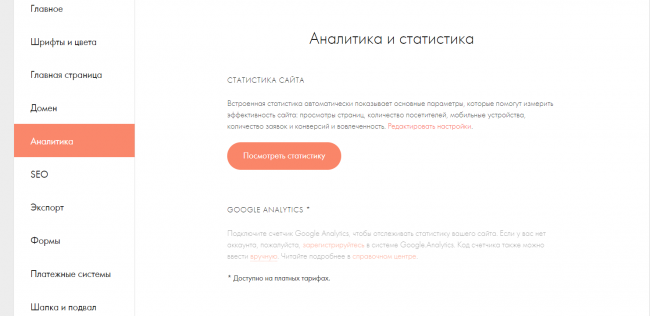 - Добавить новый проект в Tilda и подключить системы аналитики. На начальном этапе можно пользоваться встроенной статистикой, которую собирает сама Tilda, но желательно также подключить Метрику или Google Analytics. Для этого нужно разрешить доступ Tilda к аккаунту в Метрике или в Google Analytics и выбрать нужный счетчик.