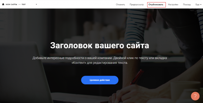 - Опубликовать страницу, нажав соответствующую кнопку в верхнем правом углу.