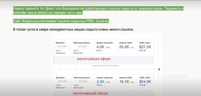 Лучшая практика — проанализировать мани-сайт человека, который ведет обучение. Скрытые PBN, как они созданы и как выглядят. Это даст гораздо больше информации, чем обещания возможного псевдогуру.