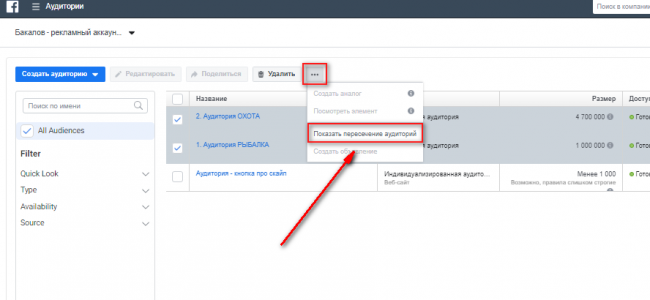 Важно: пересекаться могут не только аудитории, сформированные по интересам, но также и аудитории сайта, социальных сетей (аккаунта Instagram и Страницы Facebook), а также look-alike сегменты.