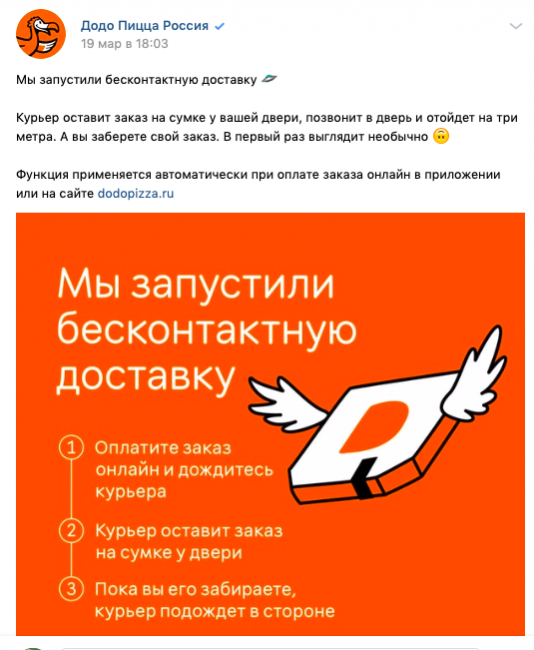 «Додо Пицца» организовала доставку товаров первой необходимости.