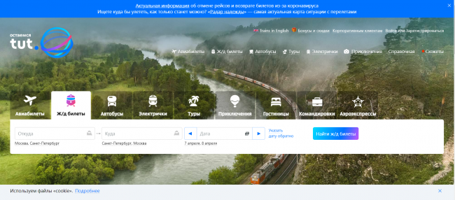 Сервис по брониронированию билетов Tutu.ru в своем логотипе призывает оставаться tut