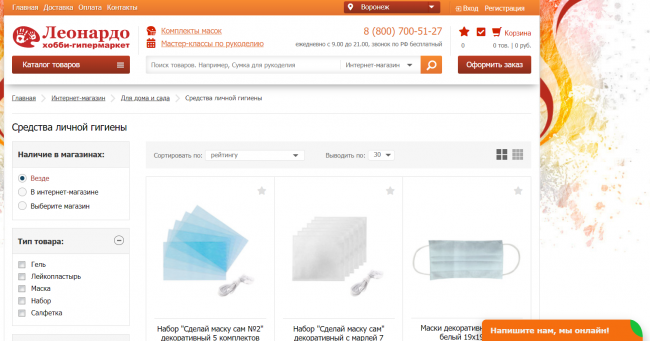 Хобби-гипермаркет «Леонардо» доставляет антисептики, пластыри, наборы для изготовления масок и готовые маски
