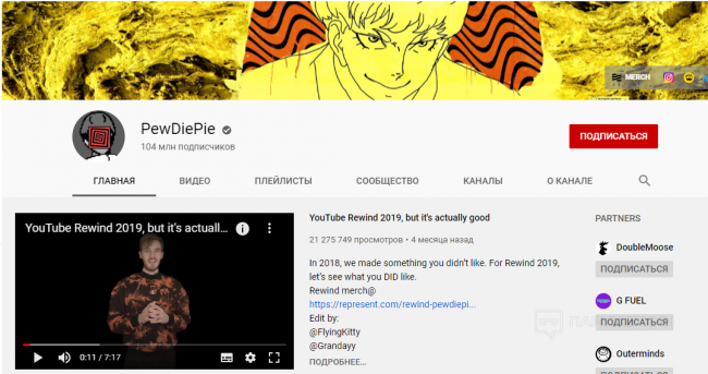 Он является самым популярным индивидуальным создателем контента на YouTube, собравшим более 25 миллиардов просмотров за последние десять лет. В свое время популярность в сети известный швед завоевал благодаря трансляциям видеоигр. В настоящее время его канал разбавлен развлекательным контентом.