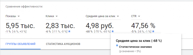 Вот результаты, которые мы получили при параллельной работе основной и экспериментальной кампаний в течение недели: