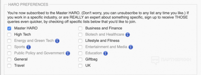 Рассчитывать на позитивный результат можно только в случае, если вы действительно подходите как источник — готовы предоставлять нужную и ценную информацию. После регистрация необходимо выбрать сферы, по которым вы хотите получать рассылку. Если поставить галочки везде — утонете в ненужных предложениях.